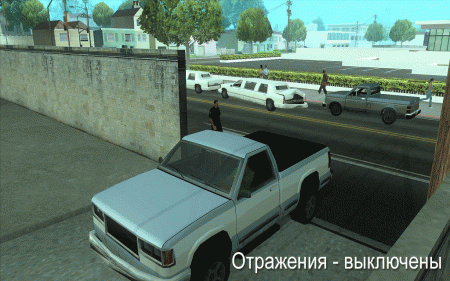 В стандартной игре на транспортных средствах есть «поддельные» подвижные отражения, а благодаря этому эффекту они будут высчитываться в реальном времени и на поверхности транспортного средства будет отражаться окружающий мир. Ресурсоемкость эффекта меняется в зависимости от того, какие параметры выставлены для отражений.