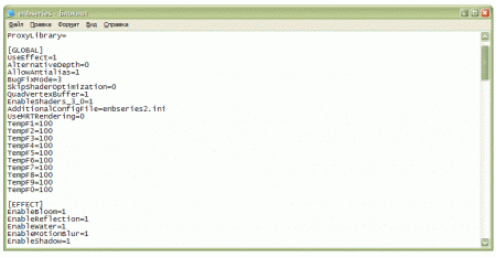 Файл enbseries.ini открывается в текстовом редакторе. После открытия мы увидим список параметров, которые разбиты по секциям с названиями вроде [GLOBAL], [EFFECT] и т.д.