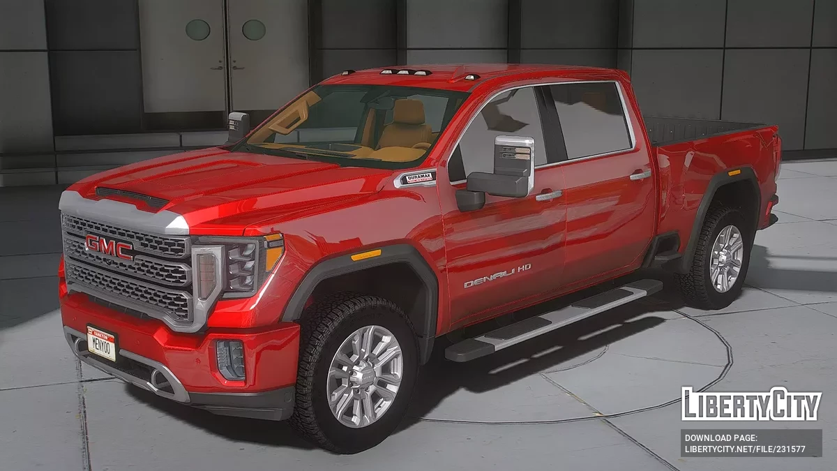 2023 Sierra 2500HD Denali для GTA 5. Передняя часть: Массивная решётка радиатора с хромированной окантовкой и крупным логотипом GMC придаёт автомобилю мощный и солидный вид. Фары выполнены в современном вертикальном стиле и дополнены LED-элемент...