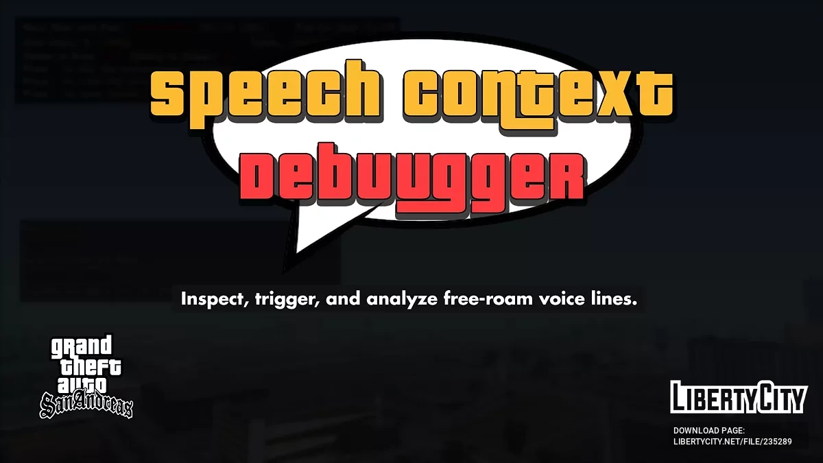 Этот скрипт CLEO позволяет воспроизводить и анализировать аудио персонажей в свободном режиме (известные как контексты речи) в GTA San Andreas. Он позволяет определить, при каких обстоятельствах срабатывает каждая реплика или проверить, были ли прав...