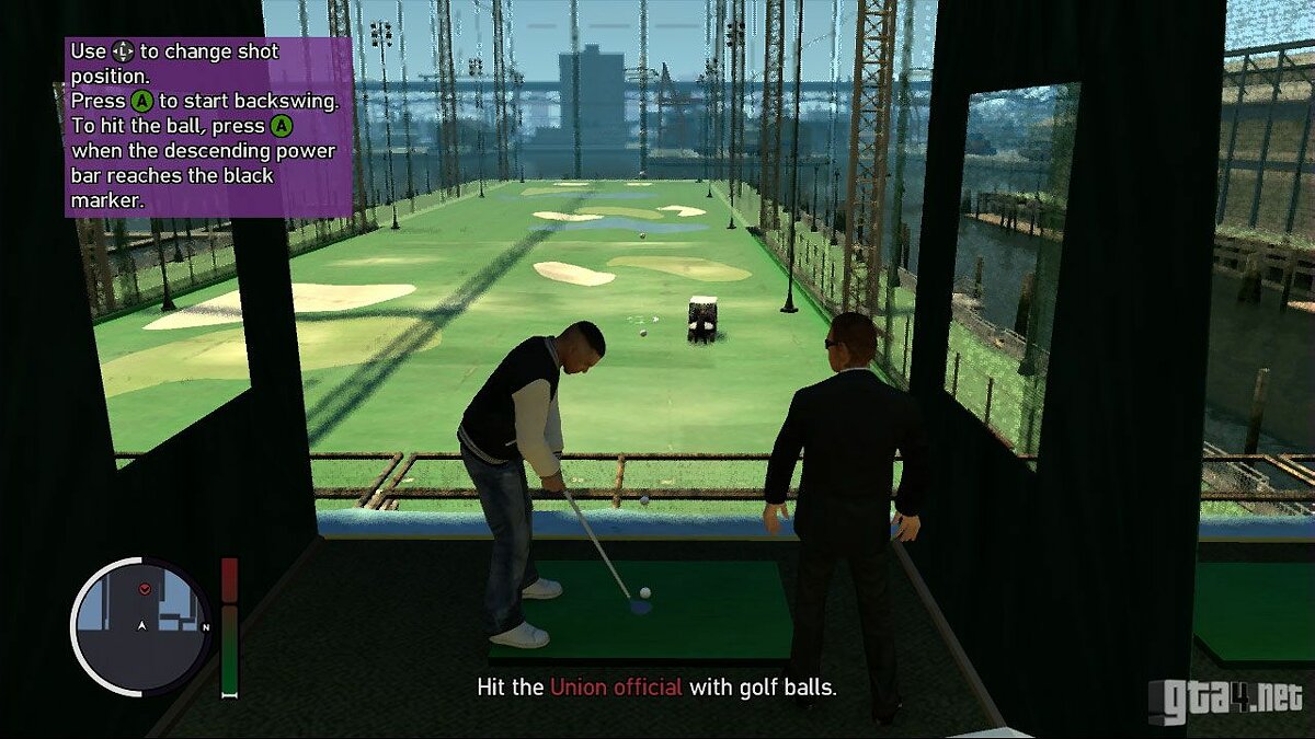 Отправляйтесь на встречу с Рокко в гольф-клуб Golden Pier. Рокко привык использовать нестандартные методы добычи информации из людей. Поэтому он хочет, чтобы вы хорошенько прицелились и ударили по мячу так, чтобы он попал прямо в несчастную жертву. Переместите маркер прямо на рабочего (тут, для точного размещения указателя, может потребоваться функция приближения). Бейте по мячу, когда ползунок в шкале мощности удара достигнет черной отметки.