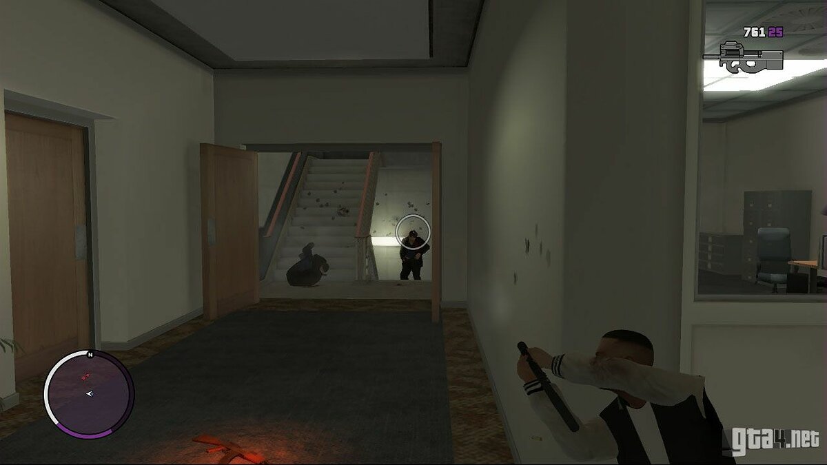 После того, как вы убьете первую группу триад и прошли первый этаж, появится вторая группа врагов, которые не будут отмечены на радаре. Перед тем, как в них стрелять, найдите укрытие и начните вести слепой огонь, чтобы минимизировать полученный урон. (Подсказка: перед началом миссии купите в Армандо гранатомет и используйте его, чтобы уничтожать врагов пачками).