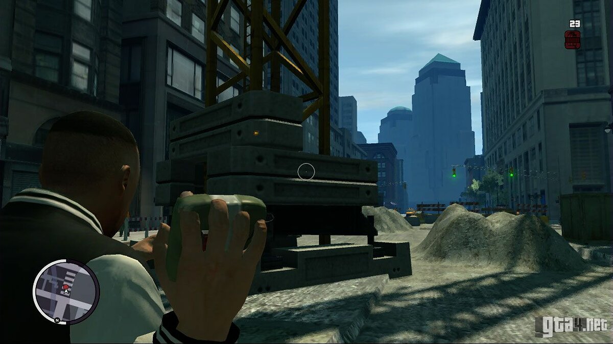 Первая ваша цель — прораб, который находится на стройке возле крана. Отправляйтесь к крану и закиньте несколько гранат в его основание. Садитесь в тачку и нажмите на кнопку детонатора, после чего смотрите красивую заставку, во время которой кран с грохотом падает на землю.