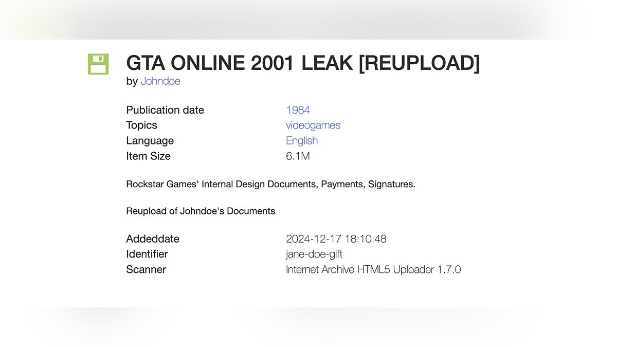 Необходимо также отметить ситуации, связанные со сливами официальных материалов Rockstar. В конце 2024 года и на протяжении января 2025-го происходили огромные утечки архивных материалов. Например: