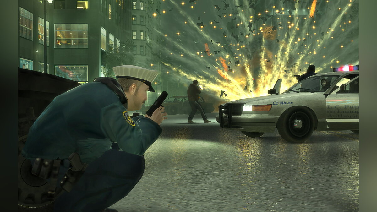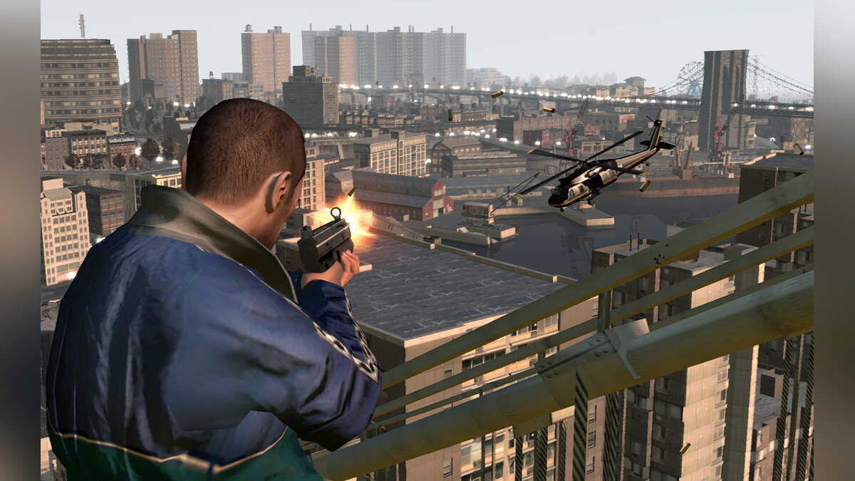 Вдоволь набегавшись по городу, мы наконец решили посмотреть на игру во всей красе и поставили все настройки на максимум. Здесь надо сказать, что версия для PC намного краше консольных версий. Мы решили проверить заявления разработчиков об улучшенной дальности прорисовки. Для этого мы взяли вертолет и полетели над Algonquin, озираясь вокруг. Вид открывается просто шикарный — видны все острова. Здесь, по сравнению с консольными версиями, все по-другому. Вы в прямом смысле этого слова можете видеть все. Каждая машинка, которая ездит под вами, отчетливо видна, вы видите все острова Либерти-Сити без всяких эффектов размытия, все очень четко, гладко и невероятно красиво.