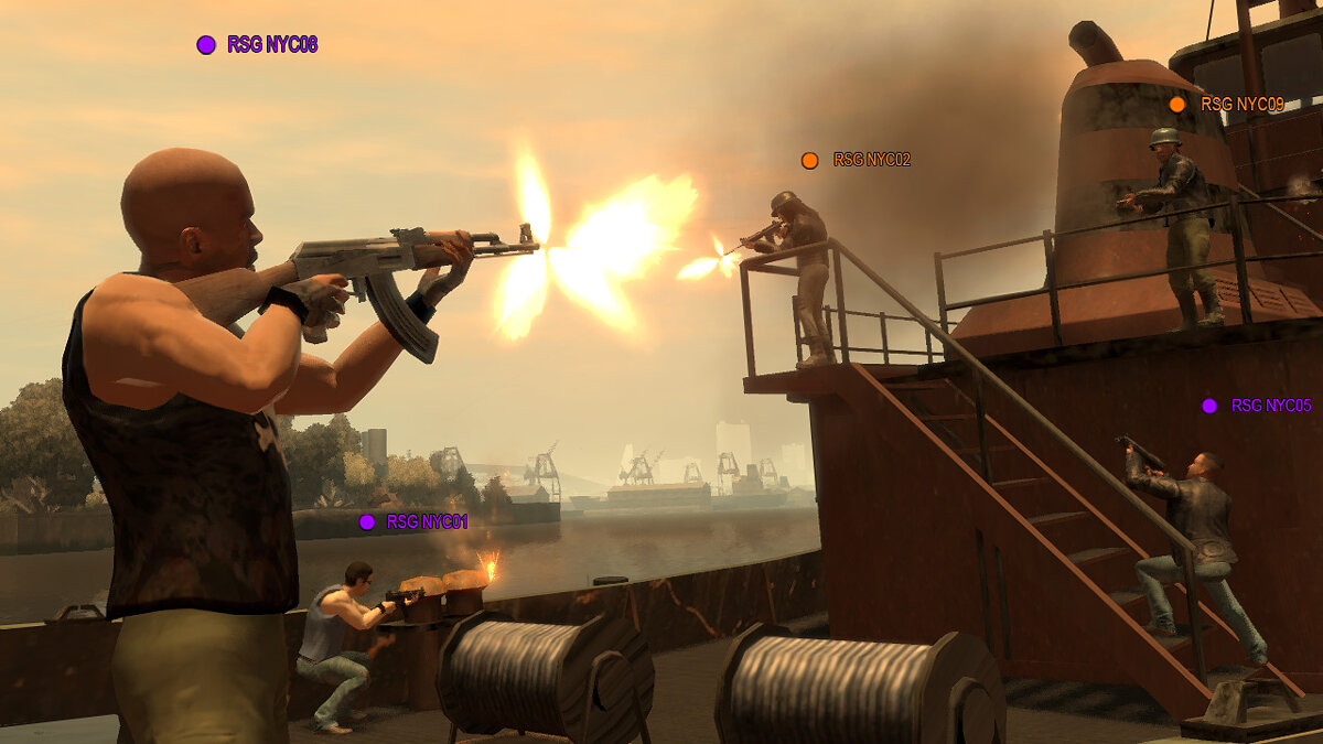 Перед началом демонстрации я предполагал, что мультиплеер в GTA IV будет напоминать Quake от третьего лица. То же мясо и реки крови, как в обычной сетевой игре, но я ошибался. Мясо и реки крови в игре присутствуют в полном объеме, но стиль игры полностью GTA-подобный, без каких-либо заимствований. Большинство человек из нашей команды погибало три или четыре раза за каких-то 10 минут игры на острове Happiness (игровое воплощения Нью-йоркского острова Свободы).