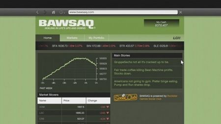 Чтобы следить за ценами на фондовых рынках, пользуйтесь телефоном или ноутбуками. Также вы можете зайти в Социальную сеть Rockstar, чтобы следить за ситуацией на BAWSAQ, хотя здесь происходит небольшое отставание от реальных внутриигровых цен.