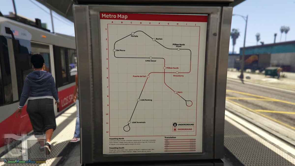 Создавая Лос-Сантос, разработчики не обделили вниманием относительно небольшую сеть метрополитена из реального Лос-Анджелеса. На ней есть и подземные участки, и наземные, и даже специально построенные эстакады. В игре всё это объединили в одну систему, хотя в реальном прототипе присутствует разделение на подземное метро и лёгкое метро.