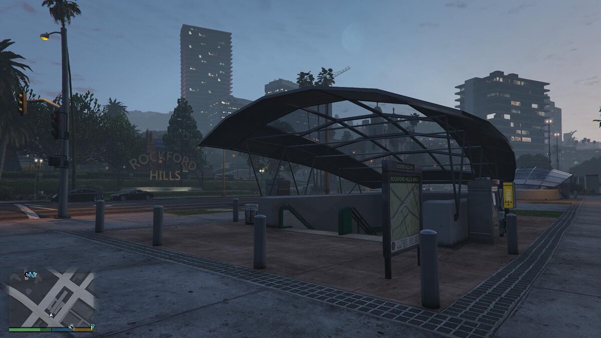 Со станции есть два выхода. Первый ведёт прямиком к Rockford Hills, но находится ближе к бутикам. А второй расположен немного южнее. Особой разницы нет, так как расстояние между выходами не превышает десяти метров.