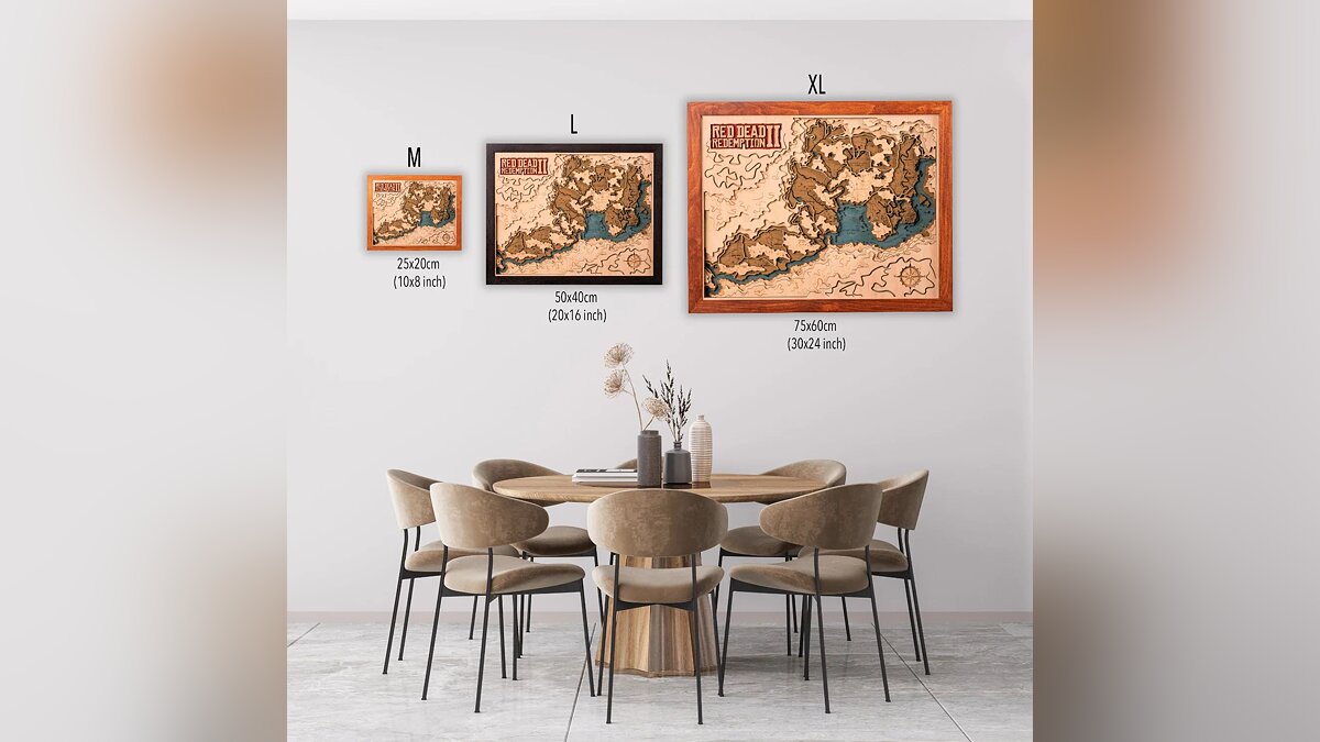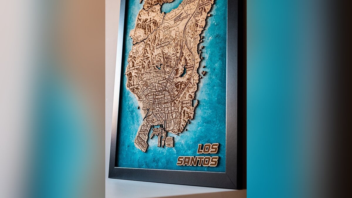 Еще одно популярное в фанатской среде направление — реальные карты того или иного мира GTA или RDR, детально скопированные с локации, с учетом перепада высот и ключевых точек интереса. Так, в сети можно найти гравированные по дереву карты Сан-Андреаса или Южных Штатов США: