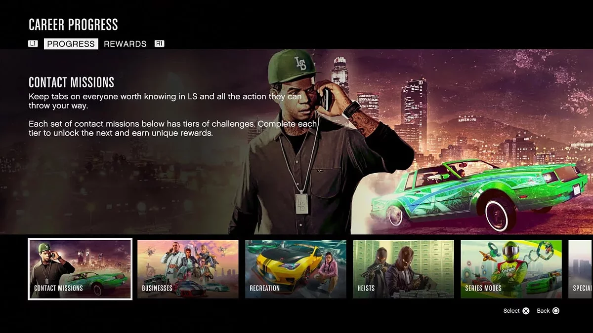 В обновлённом издании GTA 5 ежедневные задания в онлайн-режиме стали важной частью игрового процесса. В Legacy-версии они выполнялись через небольшое интерактивное меню, что оставалось незаметным для многих игроков и, как следствие, малоинтересным для рядового пользователя. Rockstar пересмотрела этот элемент и вынесла задания на главный экран меню игры. Теперь вы можете следить за прогрессом своей карьеры в Онлайне — от обновления с лоурайдерами до The Doomsday Heist. Если же вам важны только награды, можно просто просматривать их, не отвлекаясь на общий прогресс. Награды представляют собою разные предметы: от внешнего вида персонажа до редкого автомобиля.