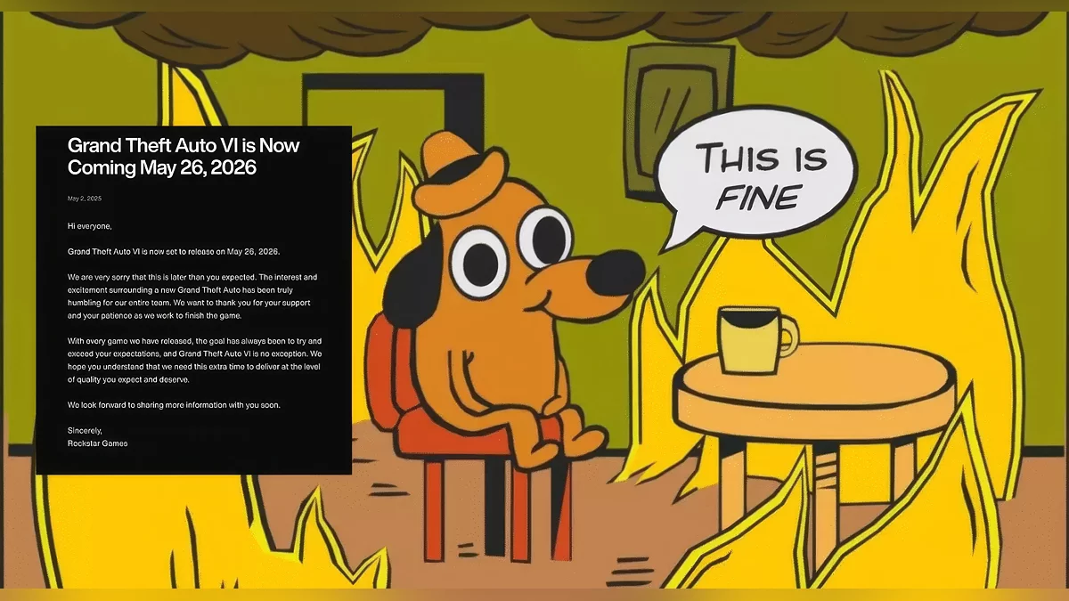 В качестве реакции фанатов серии Grand Theft Auto мы решили собрать мемы, которые описывают ситуацию с переносом релиза на май 2026-го.
