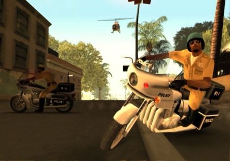 На данном скриншоте хорошо видно, что модели полицейских были другими. Скриншот был сделал во время миссии "воссоединение семей", где Сиджей, Свит, Смоук и Райдер убегали от полицейских, из-за неудачной сделки.