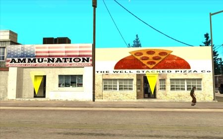 Большая часть построек в Паломино Крик – это американские жилые дома, но есть и другие здания. Их всё равно достаточно много, поэтому я покажу самые важные из них. Самые небезразличные нам – магазин оружия и пиццерия: