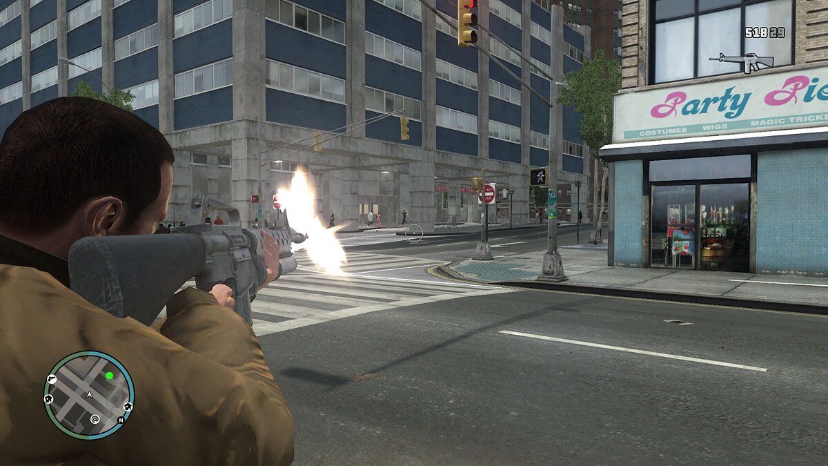 В четвёртой GTA нам предложили современную на тот момент механику перестрелок с использованием укрытий. Поначалу Rockstar планировала добавить к ней замедление времени, как в Max Payne. Но полноценное slo-mo мы увидели лишь в пятой части серии. А ещё разработчики заявляли, что пули и ракеты смогут рикошетить от стен. Нечто подобное иногда встречается в шутерах от первого лица. Но в итоге было решено, что эта механика сделает стрельбу слишком непредсказуемой.