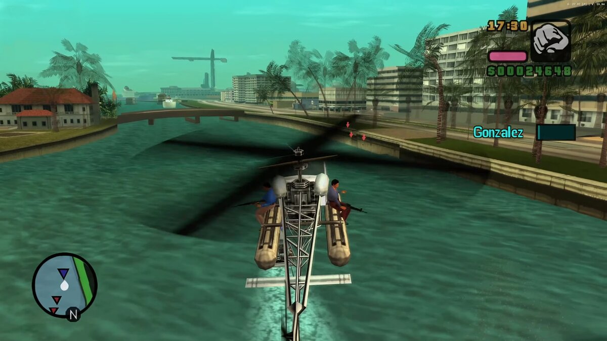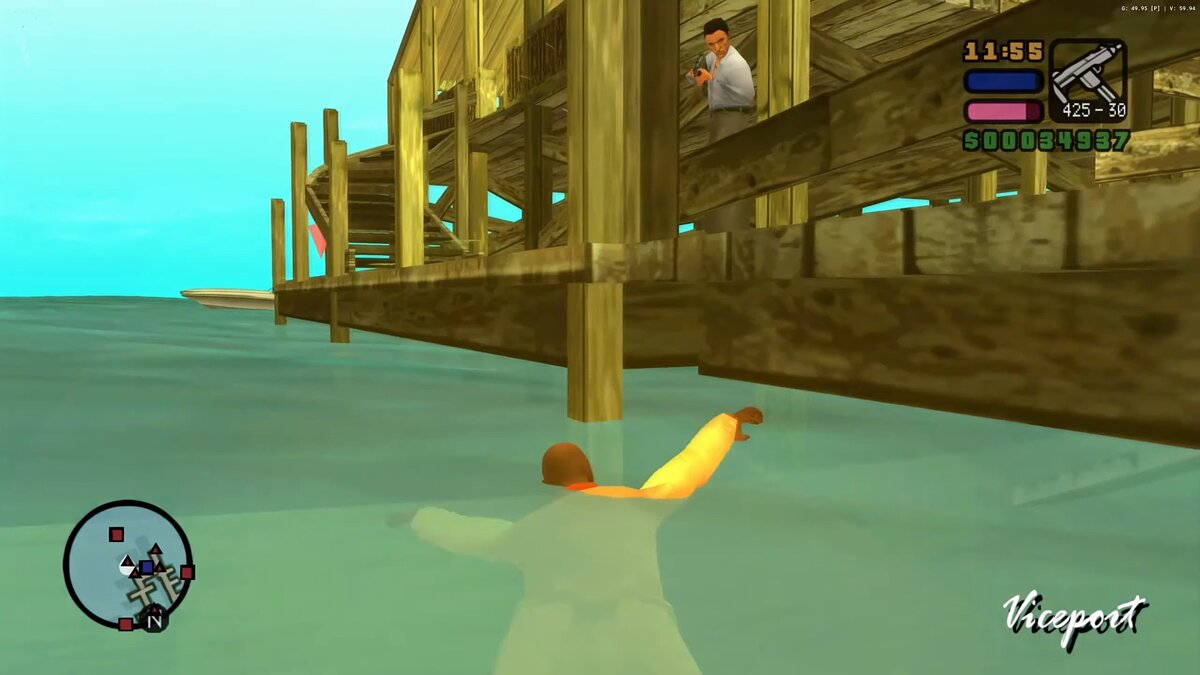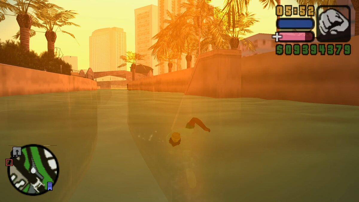 Но одно дело — научить героя плавать, другое — как он будет взаимодействовать с водой? Сам Вайс-Сити окружен водным пространством, и если в оригинальной игре оно было лишь декорацией, то с возможностью плавать и частым использованием водного транспорта, разработчикам пришлось переписывать полностью модель плавучести, которая нужна для использования гидроциклов. Также был улучшен внешний вид воды благодаря новым эффектам прозрачности, брызг и волн. Rockstar Leeds настолько заморочилась в проработке воды, что добавила несколько состояний моря в разных погодных условиях. И это, подчеркну, на технически слабой PSP.