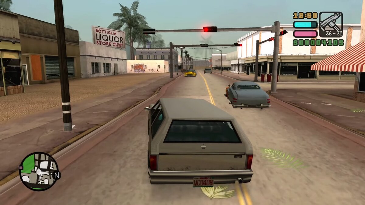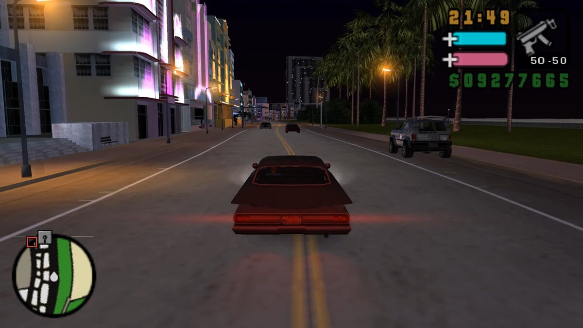 Как только солнце уходило за горизонт, за дело брались неоновые эффекты света. Дизайнеры не поленились и растолкали неоновые вывески по всему Вайс-Сити. Теперь скриншоты для игры можно было делать не только на Оушен-драйв, а даже на неприметной портовой Бэйшор-авеню. Помимо вывесок, повсюду были и другие разноцветные источники света: гирлянды на домах и проводах, яркие магазины и анимированные текстуры витрин. Все это воплощало ту самую магию Vice City, из-за которой хочется перепройти игру в очередной раз.