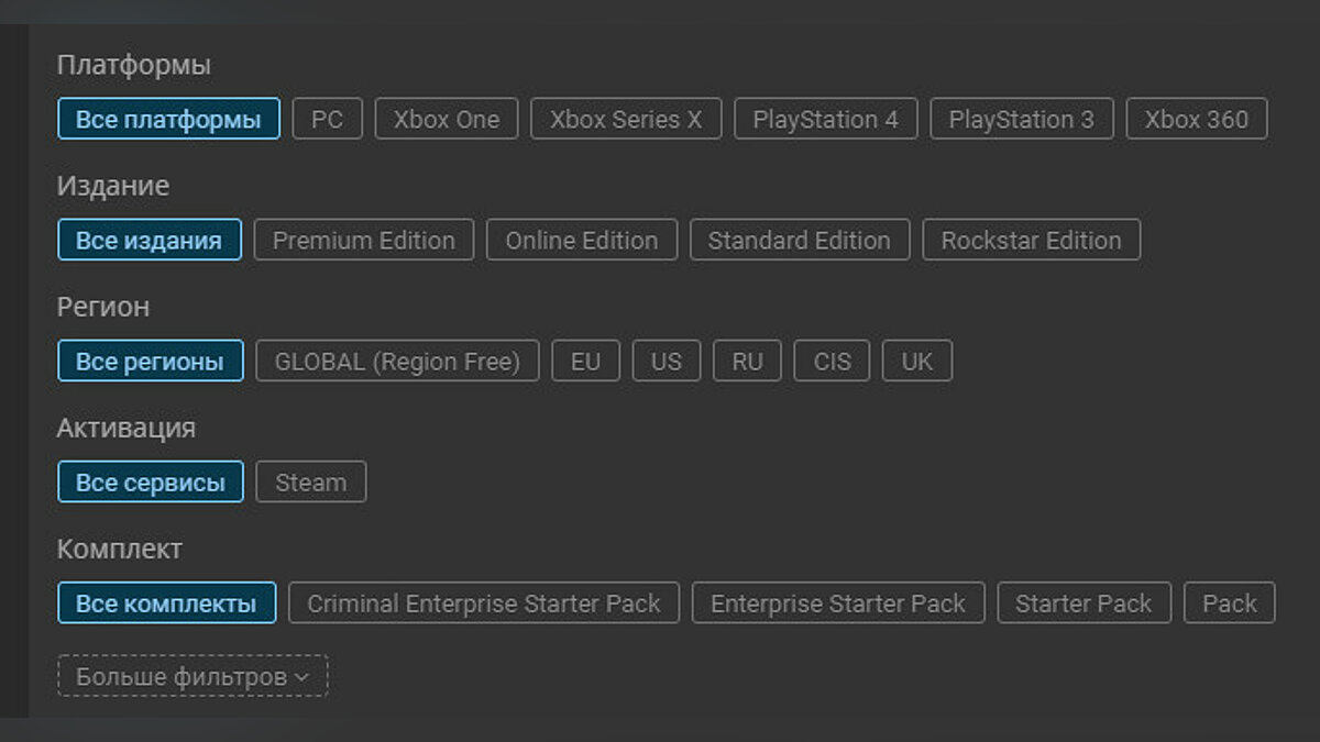 С помощью фильтров выберите желаемую платформу и версию игры. Перед вами откроется список доступных магазинов. Это неофициальные магазины, но все они были тщательно проверены.