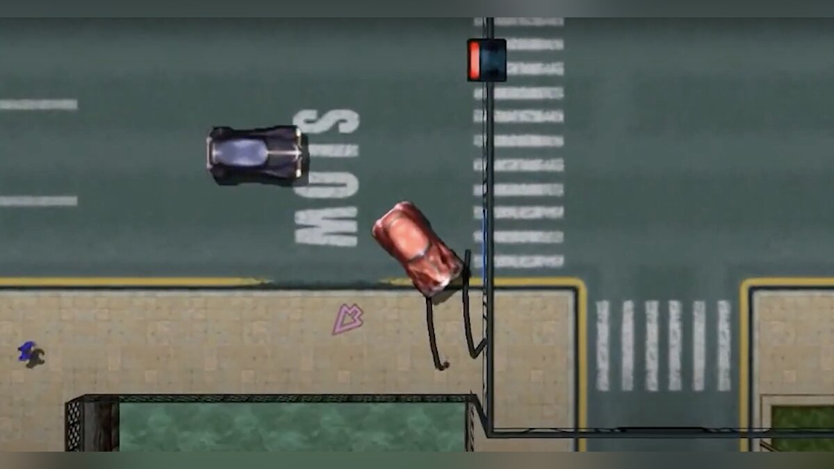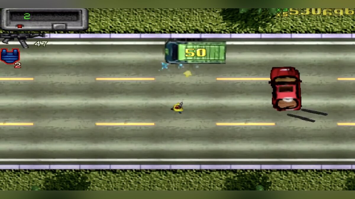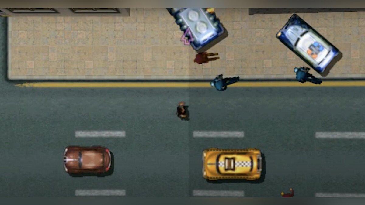 Первая GTA была экспериментом, играбельным концептом, который мало походил на полноценный сюжетный проект. Технологии 1997 года не позволяли Rockstar Games (тогда называлась BMG Interactive) реализовать 3D-графику, поэтому перспектива была сверху. Это закономерно сильно усложняло вождение автомобилей и в целом ориентацию в мире.