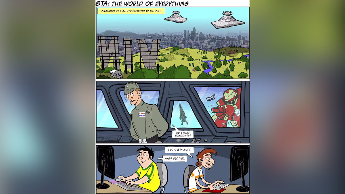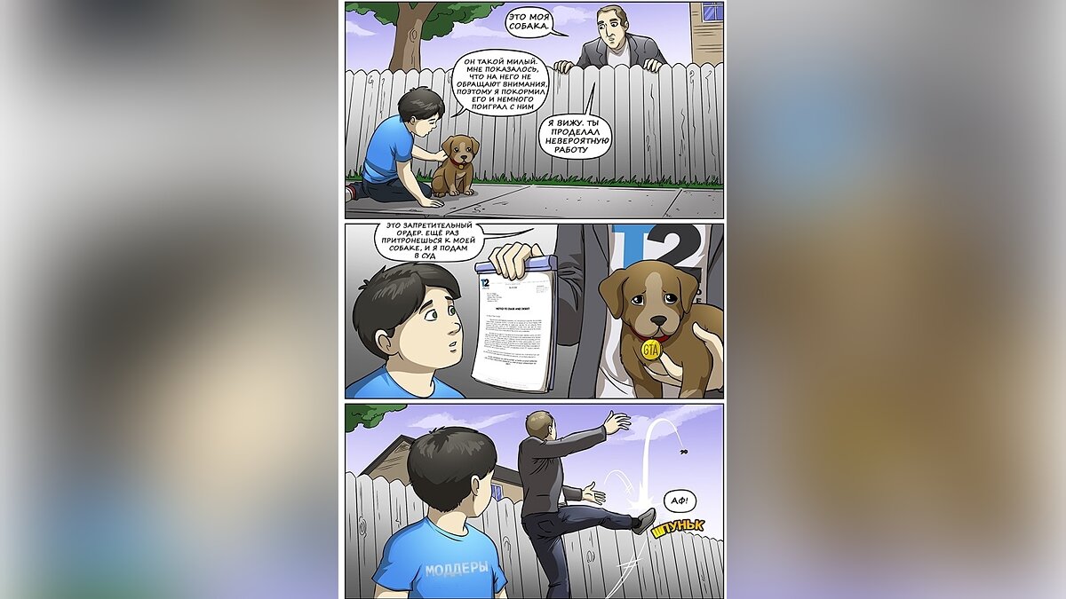 Фанфики — распространенный вид творчества, который позволяет выйти за рамки изначального сюжета игры, фильма или мультика. Среди них встречаются как небольшие рассказы, так и графические романы. Именно комиксам от поклонников серии GTA посвящена эта статья.