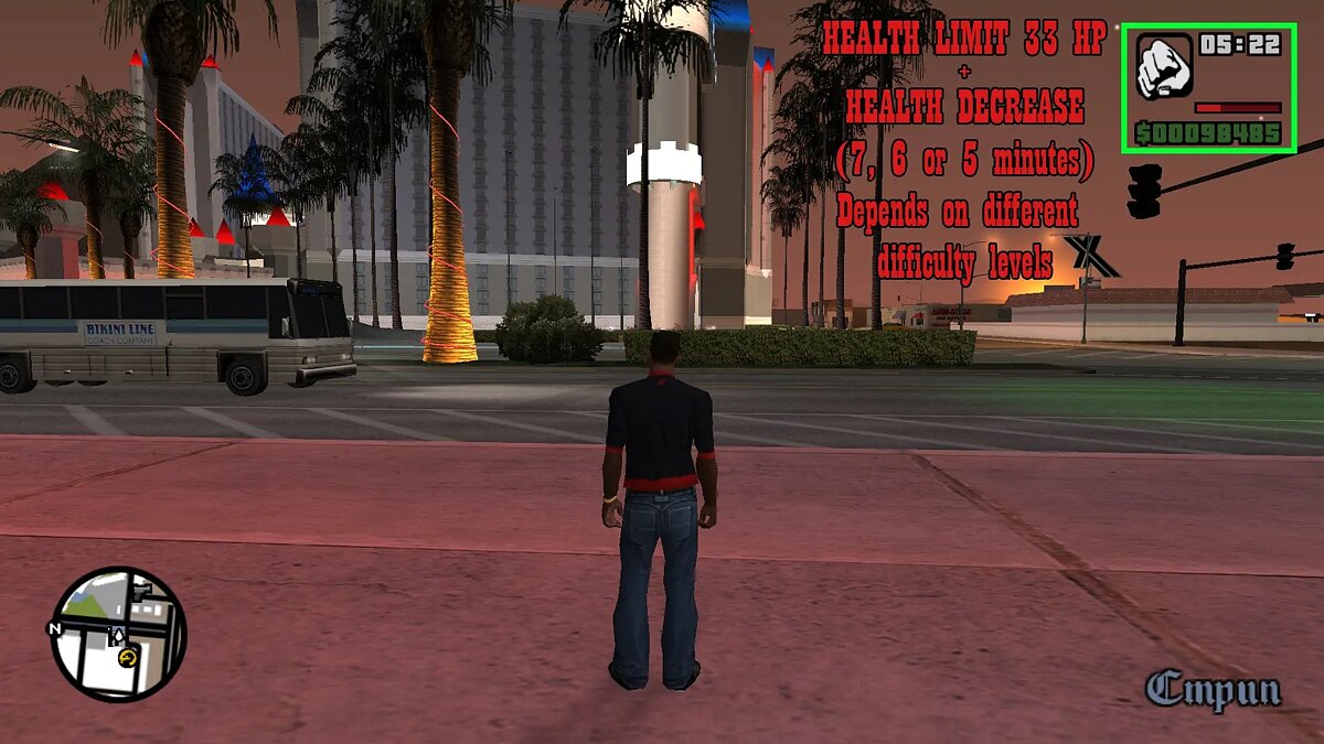 С помощью данной модификации вы сможете настроить уровень сложности в игре. На самом высоком у вас исчезнет мини-карта, шкала здоровья со временем будет уменьшаться, пропадёт броня и оружие в магазинах. К тому же появится жёсткое ограничение на число боеприпасов, которые сможет носить Си-Джей. Ознакомиться с модом можно здесь.
