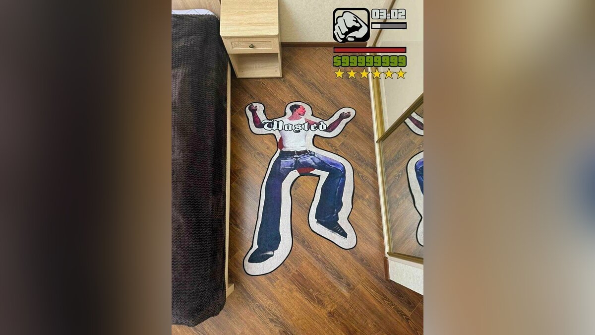 Этот подарок понравится людям с хорошим чувством юмора. Ковёр, на котором изображён Си-Джей с пулевым ранением — это действительно необычно и креативно.