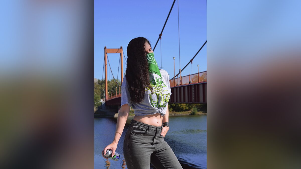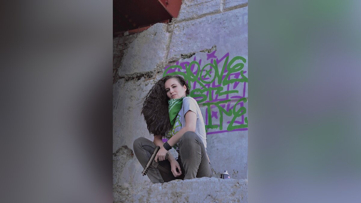 К 20-летнему юбилею San Andreas Алёна Слюнкова, больше известная как Saint Hysteria, провела косплейный фотосет. Это не конкретный образ, а ориджинал, который выполнен в стилистике игры. По задумке девушки, перед нами участница банды, которая рисует граффити с логотипом банды и метко стреляет из пистолетов-пулемётов.