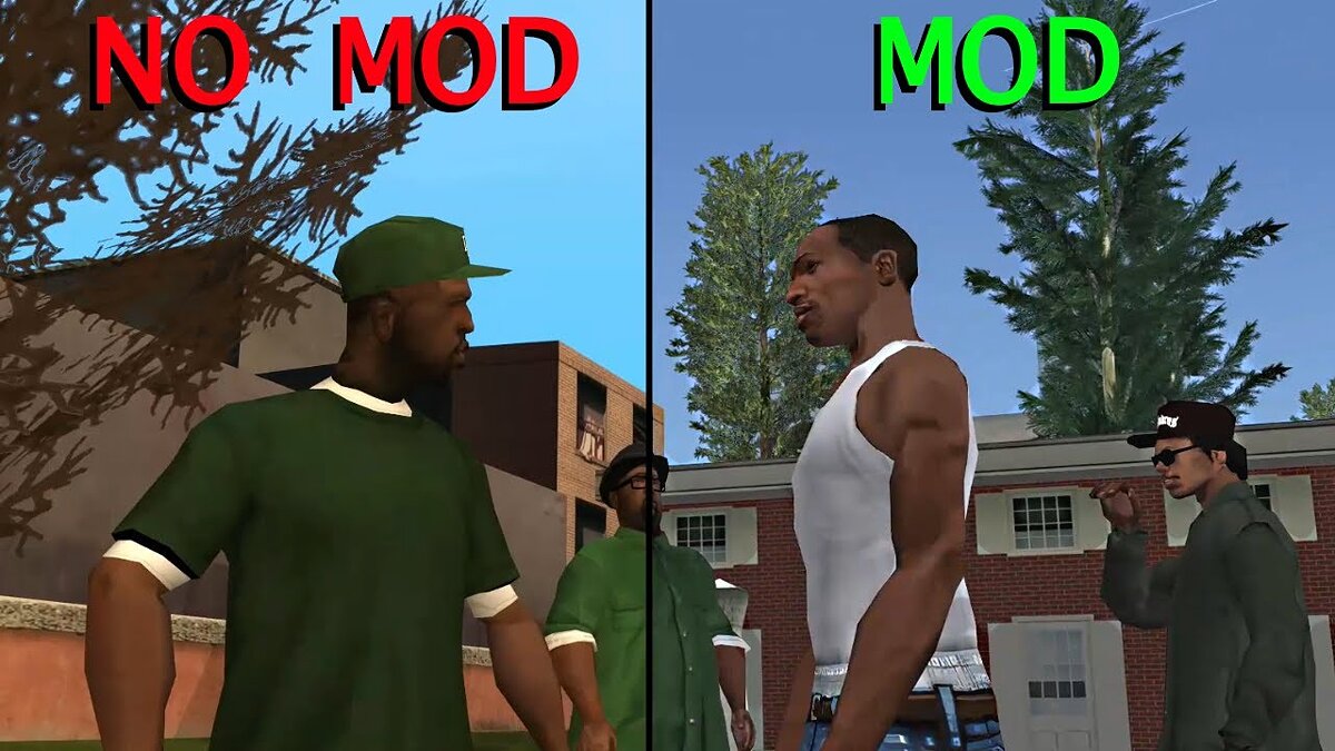 Данный мод улучшает картинку San Andreas при помощи нейросетей. Изменения распространяются на каждый элемент игры, от зданий и автомобилей до иконок оружия. Помимо этого повышается качество звука. Также можно отметить устранение багов и поддержку широкоформатных мониторов. К сожалению, модификация привлекла внимание Rockstar и была удалена.