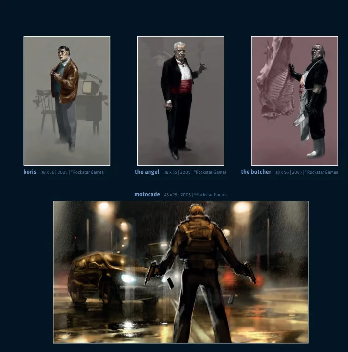 По тем данным, которое у нас есть, разработка третьей Max Payne велась в 2005 году. О первых концепт-артах мы узнали в 2019-м. Их опубликовал художник Йоханнес Мюк (Johannes Mucke), который работал в Rockstar Vienna. Он лично подтвердил, что рисунки имеют прямое отношение к Max Payne 3. На них можно заметить персонажей, которые подписаны как Борис, Ангел и Мясник, а также героя с двумя УЗИ. Возможно, это и есть Макс Пейн.