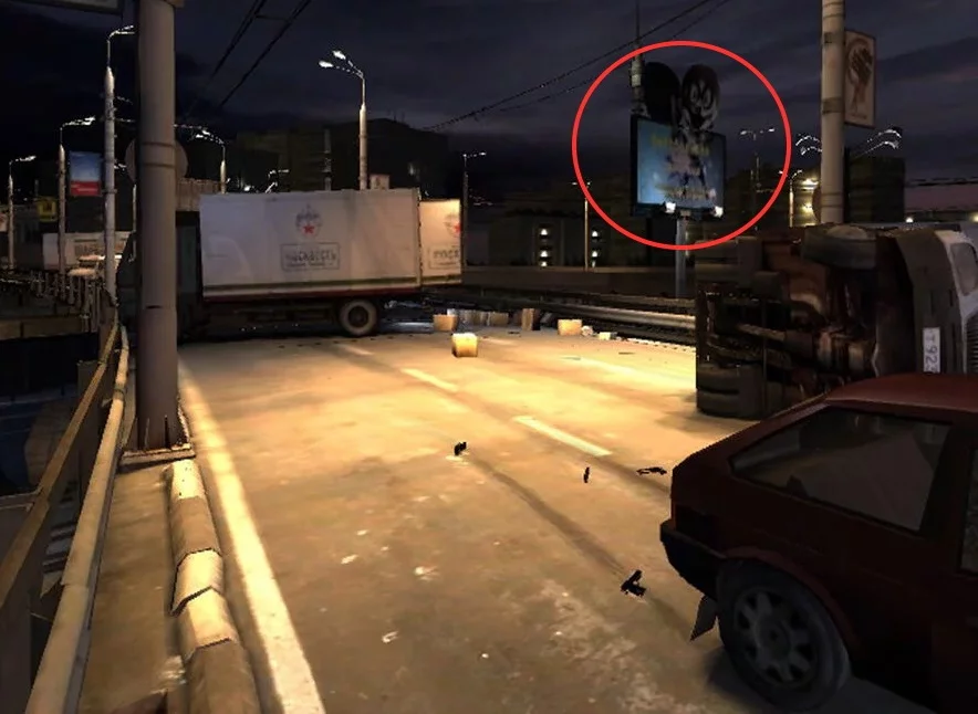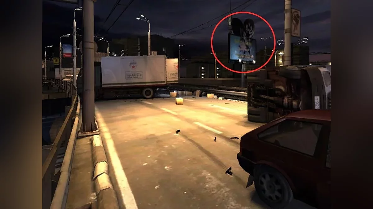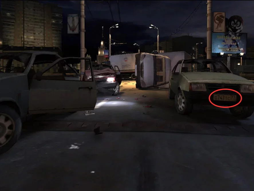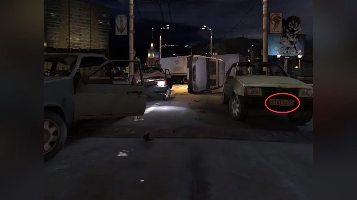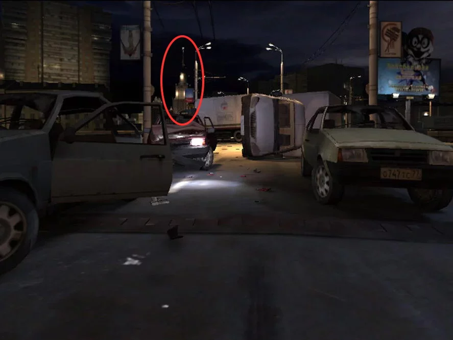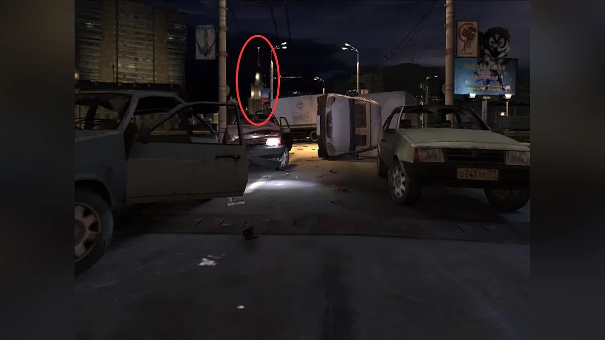 На заднем плане видно здание Московского Государственного Университета (МГУ). Ещё одно подтверждение того, что действие игры планировалось перенести в столицу России.