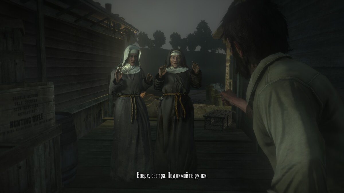 На фоне Red Dead Redemption 2 мир игры ощущается пустым. Да, он наполнен случайными событиями, такими как засады, публичные казни, стычки людей с дикой фауной, перестрелки законников с преступниками и похищения девушек из злачных мест. Но происходят такие события не так часто, как хотелось бы. Все же большая часть доступной для исследования территории не обжита и находится под властью природы. По пути иной раз будут попадаться люди, нуждающиеся в помощи. Это не рандомные события, а прописанные сценаристами сюжеты. Они раскрывают истории людей и подчеркивают темы выживания в непростое время. Без сумасшедших неигровых персонажей, конечно, не обошлось. Но это фирменная фишка Rockstar. Студия таким образом высмеивает современные стереотипы. Мини-квесты добавляют открытому миру динамичности и ощущения живости даже в момент, когда игрок не следит за основной историей.