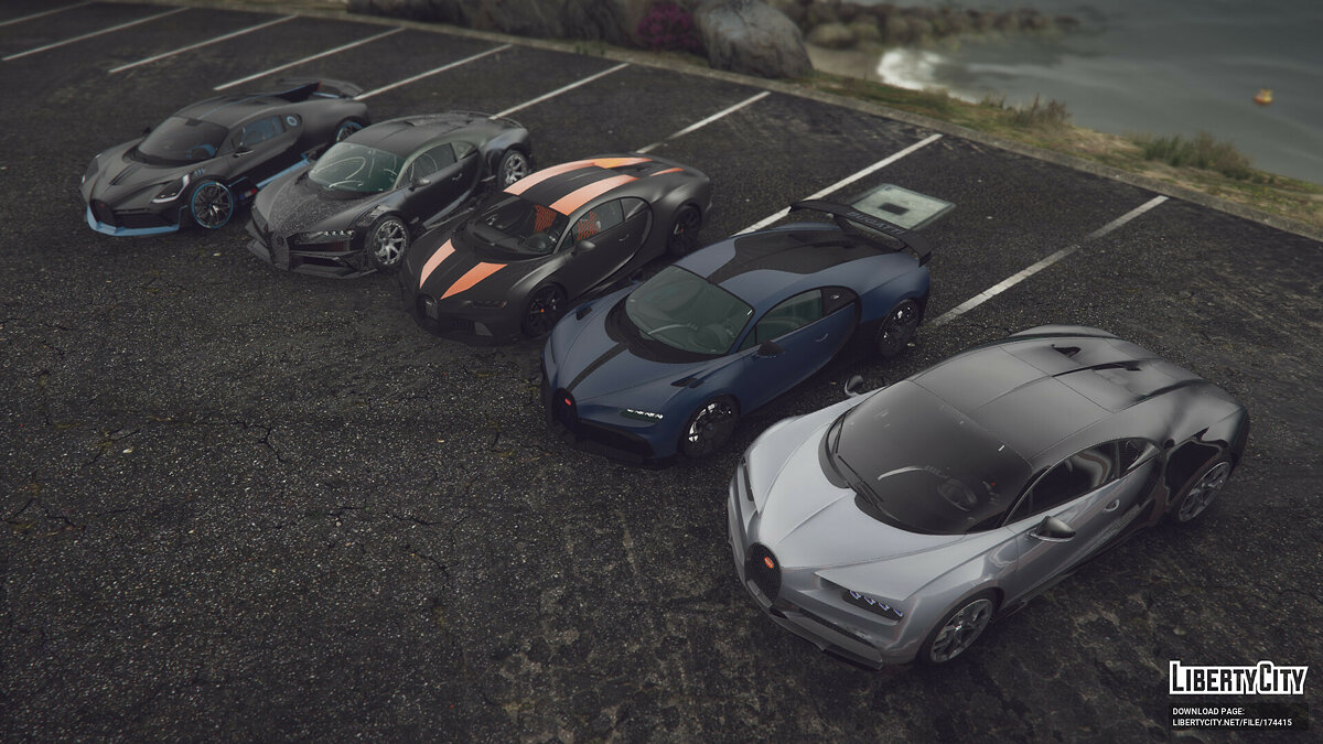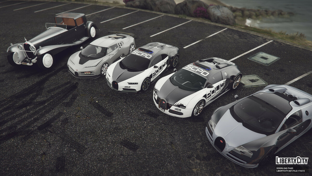 Пак Bugatti от essca включает в себя 22 автомобиля марки. В моде представлен как один из прародителей гиперкаров Bugatti Type 57, так и последние авто модельного ряда.