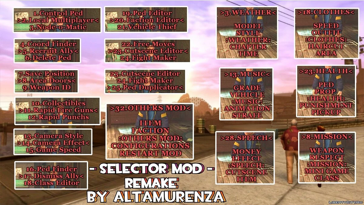 Selector Mod — это самый полный игровой трейнер для Bully Scholarship Edition из когда-либо созданных. В этом моде собрана самая большая подборка величайших знаний от комьюнити мододелов Bully, которые можно сделать с помощью скрипта Lua. Мод имеет ...
