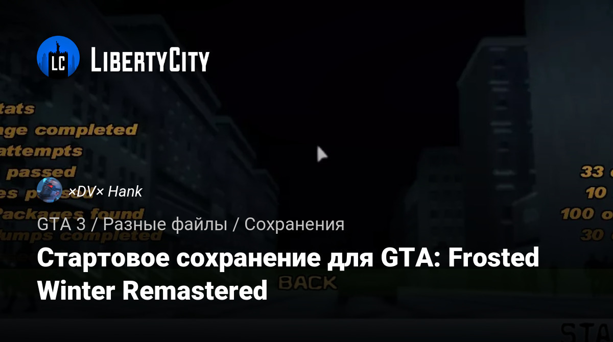 Стартовое сохранение для GTA: Frosted Winter Remastered