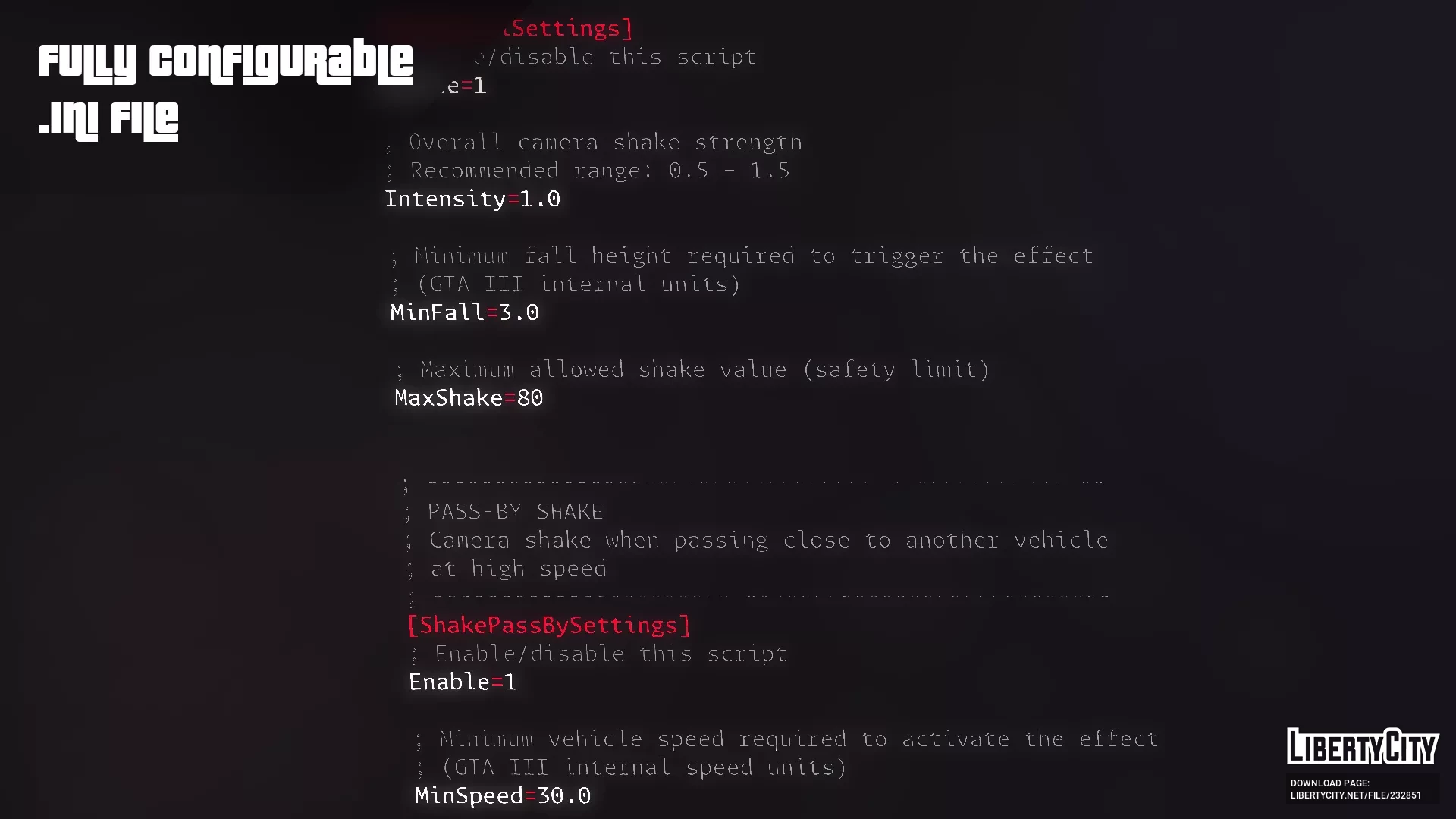 III ShakeFX — это набор эффектов тряски камеры, созданный для повышения погружения и реализма в Grand Theft Auto III.