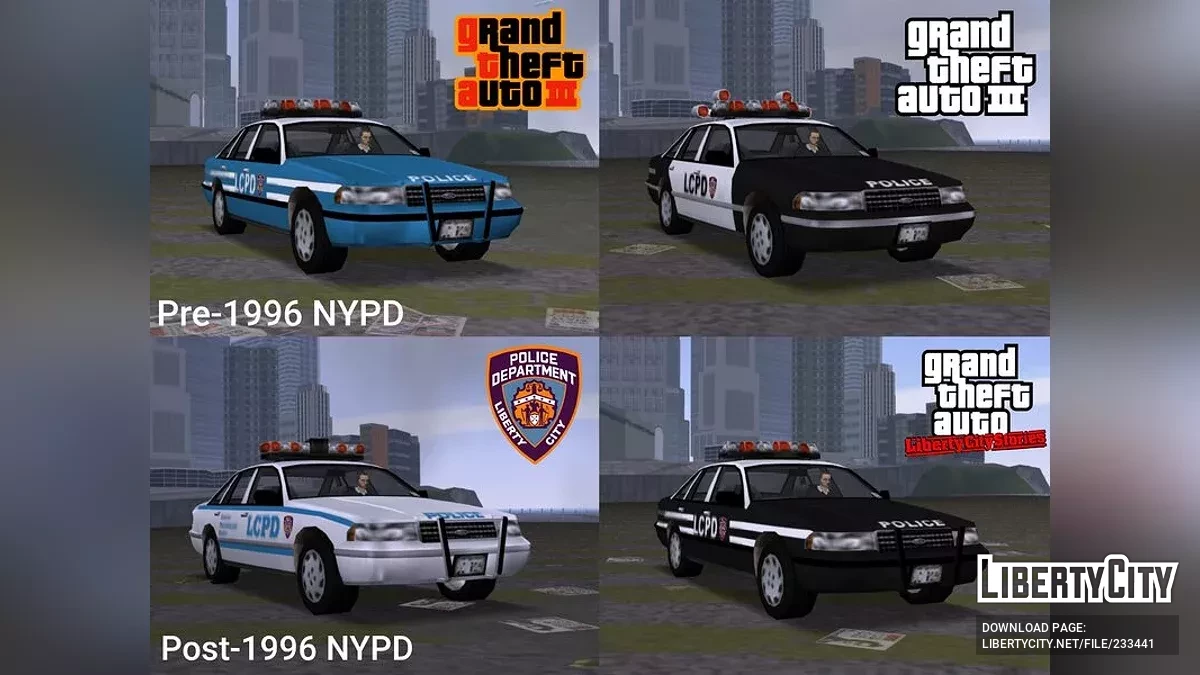 Ремейк стандартного полицейского крузера и такси, основанный на Ford Crown Victoria 92-97 и Chevrolet Caprice 91-96. Включает такси, ФБР, гражданский и полицейский варианты с 4 различными возможными раскрасками.