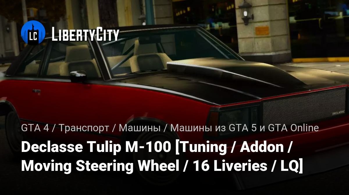 Declasse Tulip M-100 — это автомобиль, в основе которого лежит Chevrolet Malibu Coupe 1980 года с незначительными изменениями в дизайне. Решётка радиатора напоминает смесь Chevrolet Impala 1975 и 1979 годов, а задние фонари, сохраняя форму Malibu, имеют оформление, похожее на Mercury Cougar 1981 и 1982 годов.