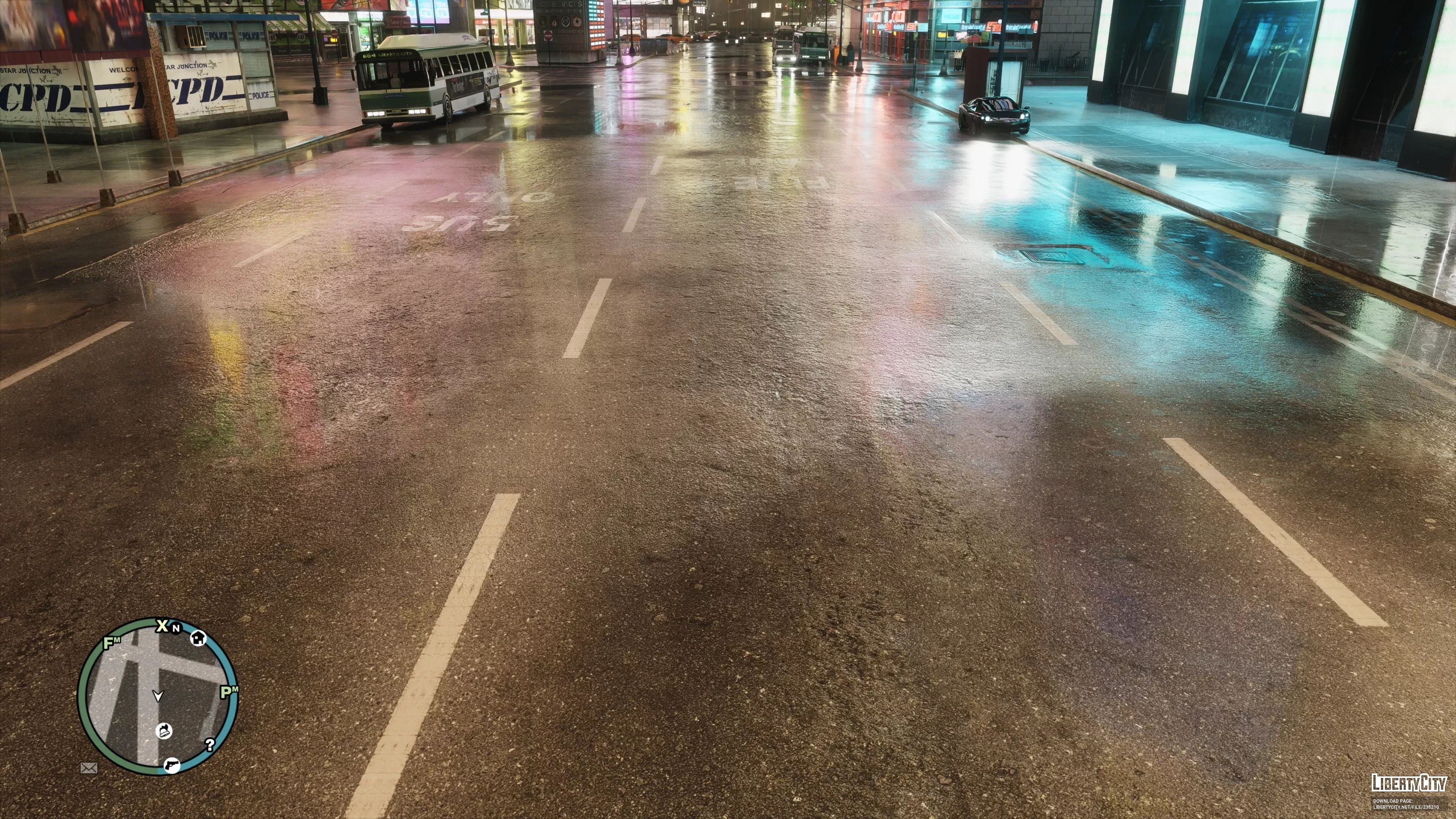 Этот мод представляет собой набор реалистичных текстур дорог в разрешении 4K, созданный для использования с технологией RTX Remix. Мод значительно увеличивает системные требования, но взамен полностью преображает дорожное покрытие Либерти-Сити. Переработаны все типы дорог: магистрали, второстепенные улицы, тротуарные проезды и пешеходные дорожки. Дорожная разметка стала четкой, а отражения в дождливую погоду — по-настоящему реалистичными, что особенно эффектно смотрится с включенной трассировкой пути .