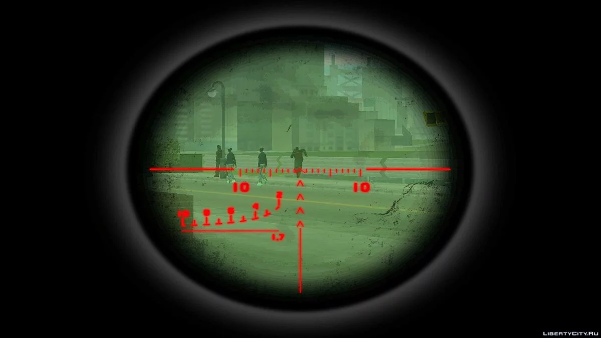 Данный мод делает оптику снайперкой винтовки более похожей на реальный прицел ПСО-1. Требуется установленный CLEO v1.0.1.6. Установка: раскидать по папкам....
