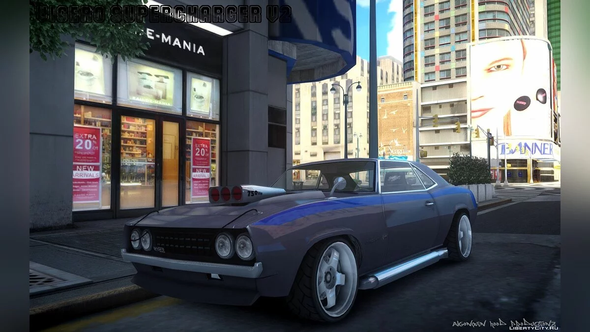 Vigero Supercharger V2 для GTA 4 Переделанная модель Vigero. Изменено: - Добавлен нагнетатель. - Выхлопные трубы. - Спойлер. - Сплиттер. - Механический блокиратор капота. - Колеса из GTA 5 - Колеса перекрашиваются. - Боковые полосы перекрашиваются ...