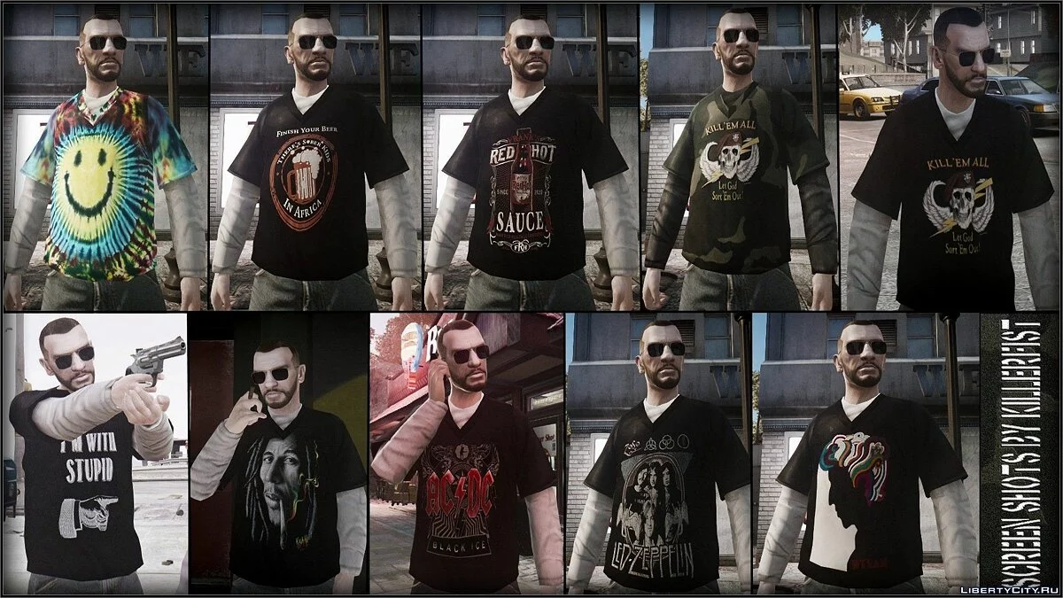 Это большой пак одежды, около 28 различных вариаций кофт для Нико. Почти все из них основаны на реальных футболках.