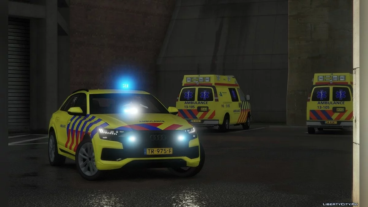 Audi q8 Ambulance [add-on, ELS] 1.1. Особенности модели: - Модель поддерживает основные функции игры; - Качественная 3D модель; - Проработанный салон; - Настроенная оптика....