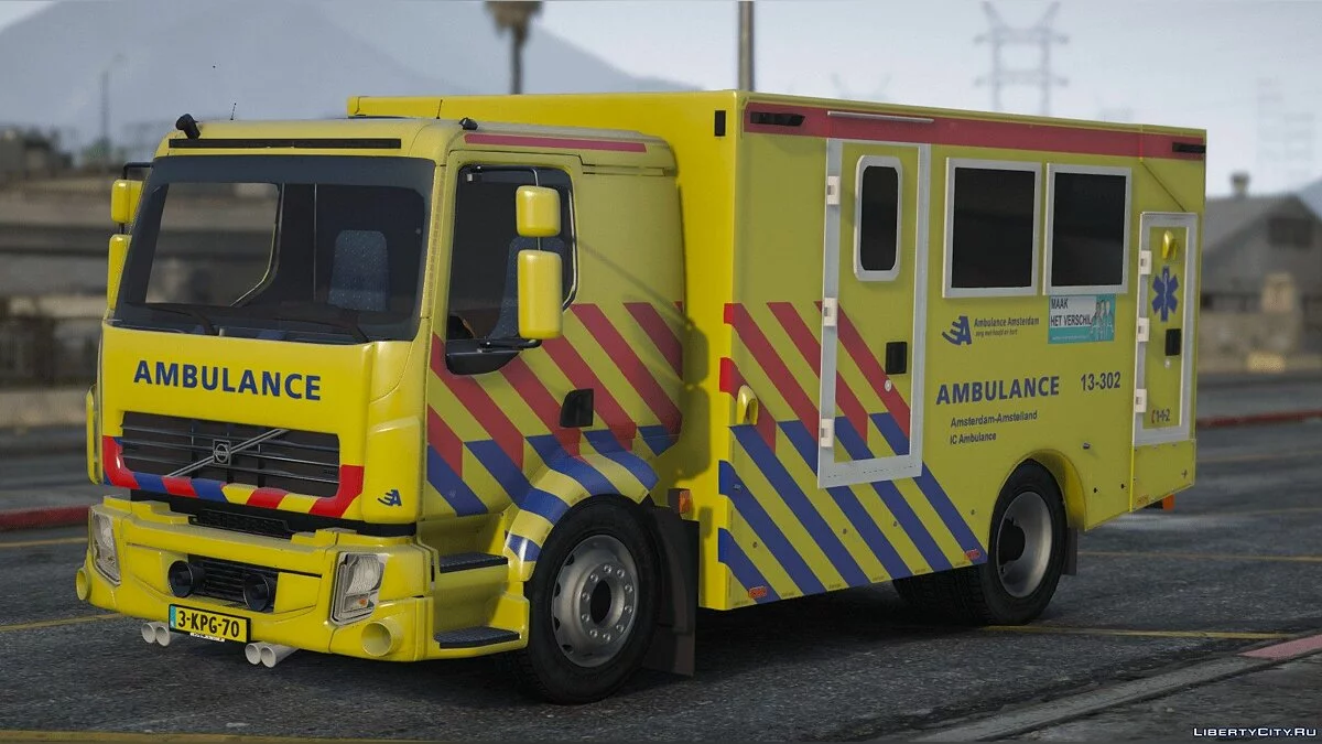 Volvo FLL MICU Dutch Ambulance [Replace|ELS|Template|Enterable] 1.1 (Fixed Collisions) для GTA 5! Особенности модели: - Модель поддерживает основные функции игры; - Качественная 3D модель; - Проработанный салон; - Настроенная оптика; - Окна разбиваю...