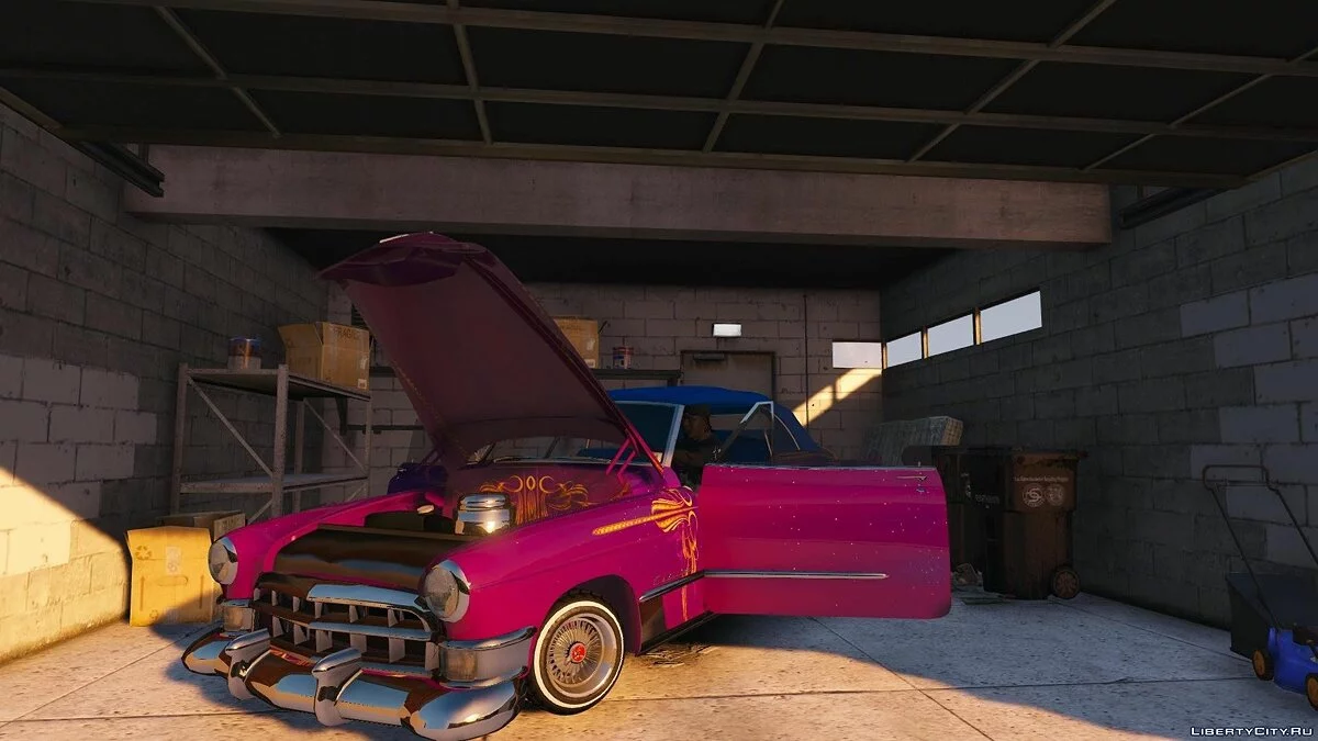 1949 Cadillac Lowrider. Особенности модели: - Детализированная модель; - Качественный экстерьер; - Проработанный салон; - Функционирующий свет; - Настроенный handling; - На лобовом и заднем стёклах остаются трещины от попадания пуль; - Водитель держ...