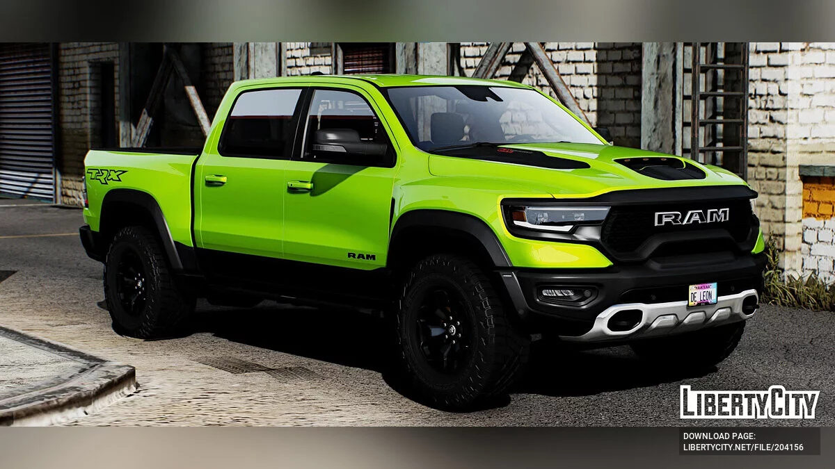 2023 Dodge Ram 1500 TRX для GTA 5. Передняя часть автомобиля включает в себя широкую решетку радиатора с крупными логотипами Dodge и TRX. Это добавляет атмосферу мощности и практичности. Крупные светодиодные фары обеспечивают хорошую осветительную ...
