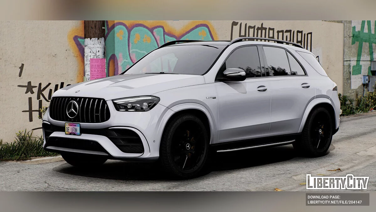 2024 Mercedes GLE 63S AMG для GTA 5. Передняя часть автомобиля включает в себя широкую решетку радиатора с крупными логотипами Mercedes и AMG. Это добавляет атмосферу мощности и спортивности. Крупные светодиодные фары обеспечивают хорошую осветител...