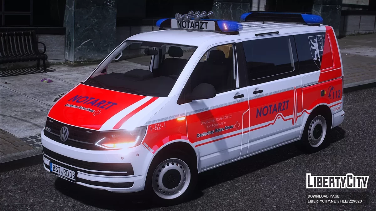 Volkswagen Transporter T6 Johanniter Bärenstein Световая система Световая балка на крыше: DBS 975 с интегрированным блоком задней системы предупреждения (RWS), направленным назад Передние фары: Классическая галогенная технология вместо LED Пер...
