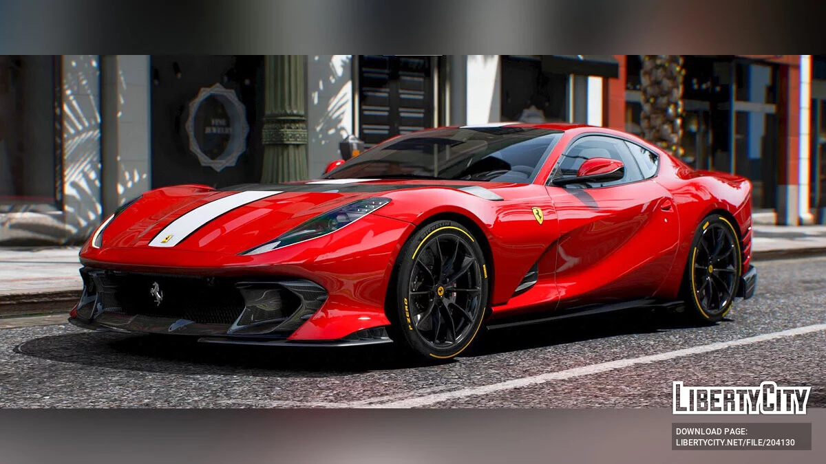 Ferrari 812 Competizione для GTA 5. Передняя часть автомобиля выразительна и агрессивна. Она доминируется большим воздухозаборником, выполненным в виде широкой глотки, что улучшает аэродинамику и обеспечивает охлаждение двигателя. Основные фары с L...