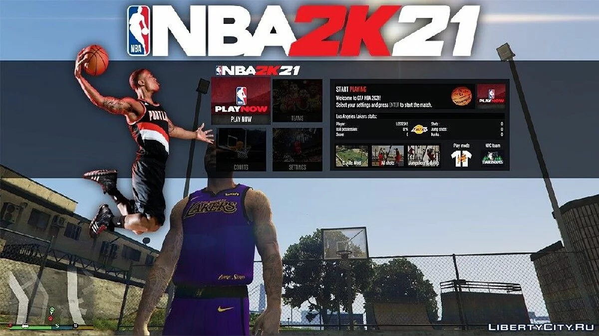 Basketball Mod [NBA 2K21] 6.1 для GTA 5. Этот скрипт позволяет играть в баскетбол в Лос-Сантосе. Вы можете играть на 6 баскетбольных площадках или даже создать свою собственную. Баскетбольные площадки: - Vespucci Beach South; - Vespucci Beach West...