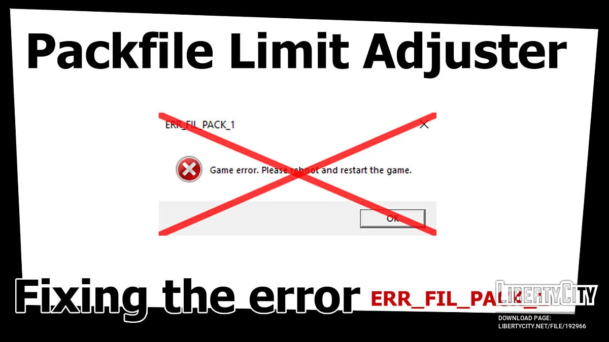 Этот ASI плагин позволяет игре обрабатывать в два раза больше игровых архивов (RPF). Обратите внимание, что этот плагин исправляет ошибку ERR_FIL_PACK_1 и ничего более. Если у вас всё ещё вылетают ошибки, рекомендую установить HeapAdjuster Кроме ...
